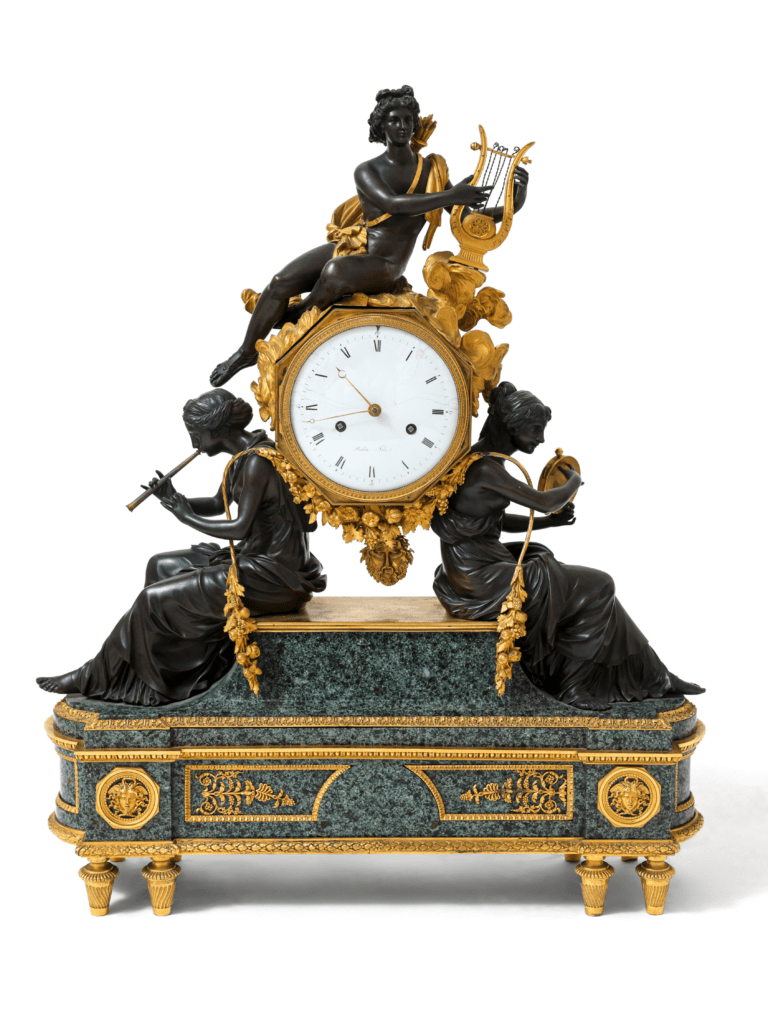 Exceptional Neoclassical Mantel Clock in Alsatian Green Porphyry